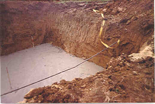 Så er hullet gravet og de første 20 cm beton fyldt i.
